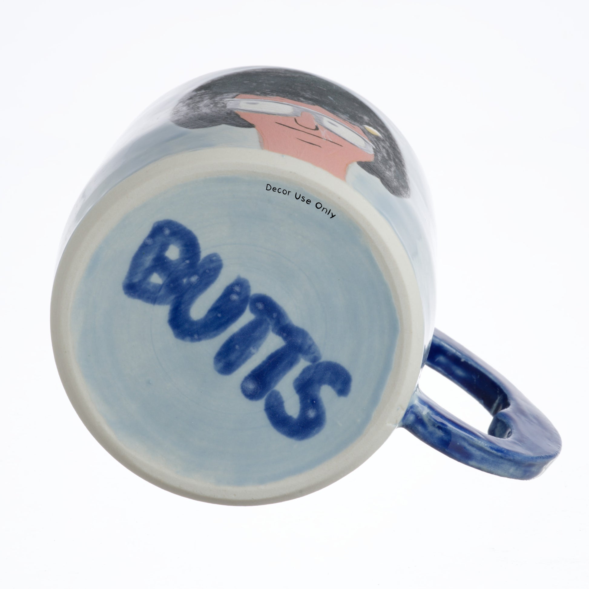 This design took nearly a year to go from sketch to prototyping to final gift for the husband. More than 15 prototypes were required to refine form and line work. Main features include a butt shape inverse carved out of the semi circle handle, full color Tina creeping on Jimmy Jr's butt, and "BUTTS" written on the mug bottom. Coloring each mug takes up to 1.5 hours of brushwork. It's a true test of my sanity to complete. While the final version is happily staying at Hei Mao HQ, the rest are eager to find new owners!