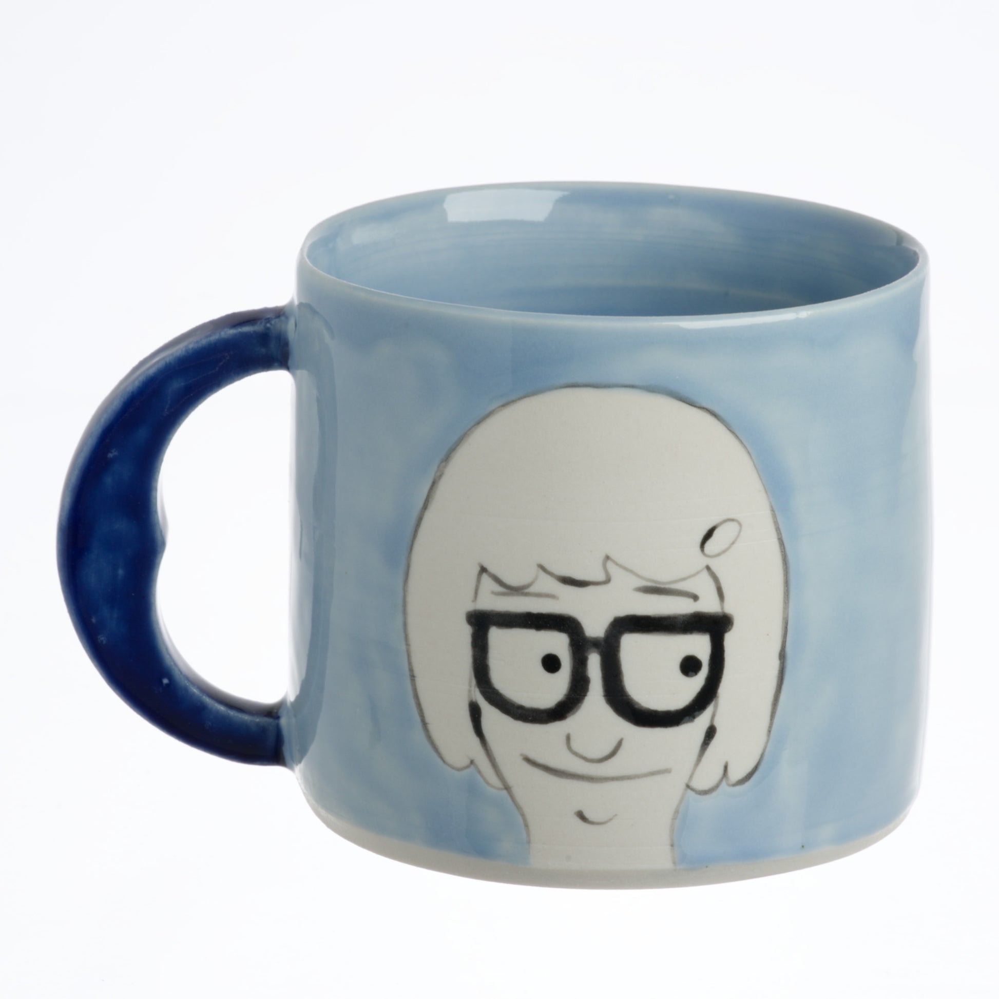 This design took nearly a year to go from sketch to prototyping to final gift for the husband. More than 15 prototypes were required to refine form and line work. Main features include a butt shape inverse carved out of the semi circle handle, full color Tina creeping on Jimmy Jr's butt, and "BUTTS" written on the mug bottom. Coloring each mug takes up to 1.5 hours of brushwork. It's a true test of my sanity to complete. While the final version is happily staying at Hei Mao HQ, the rest are eager to find new owners!